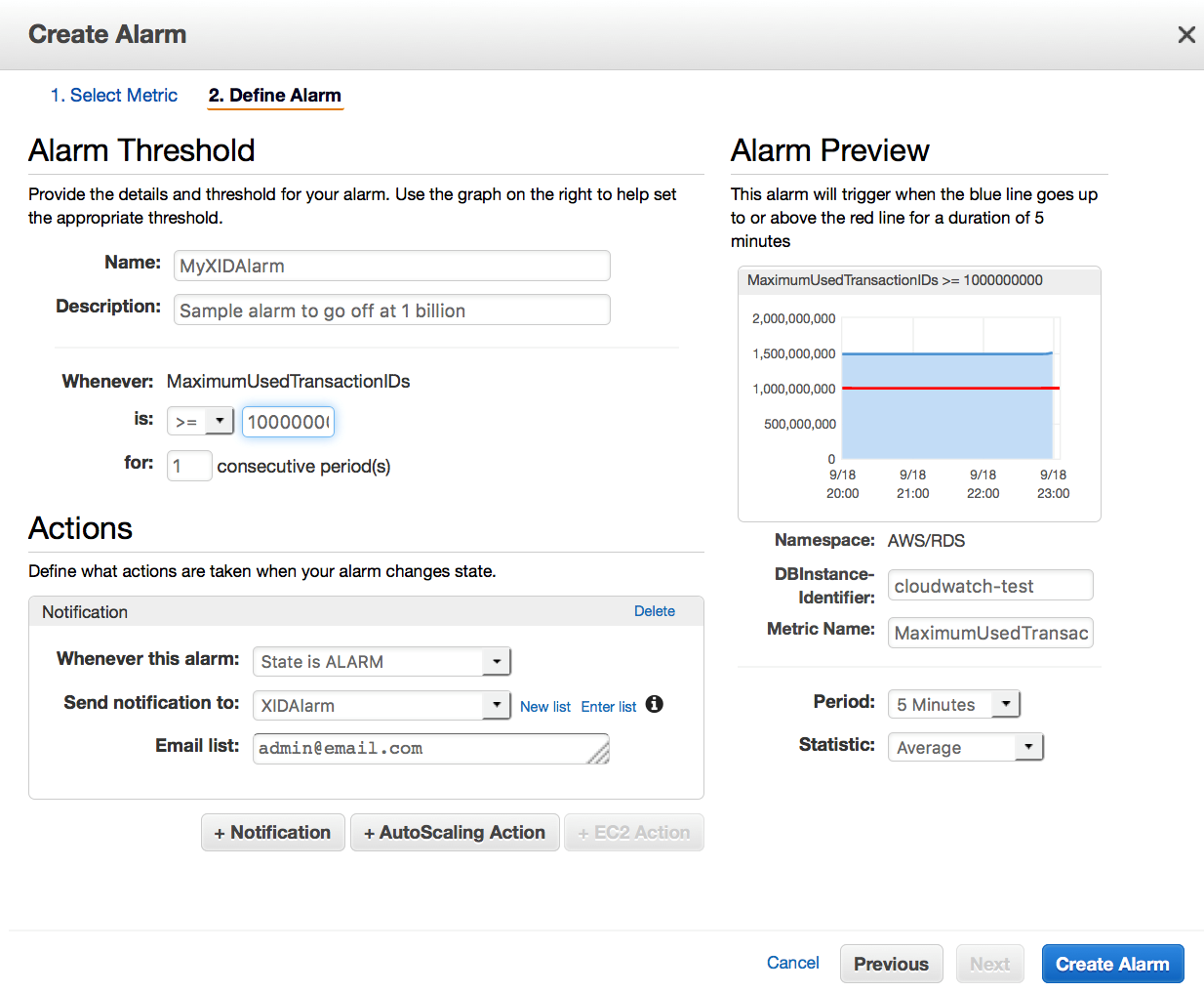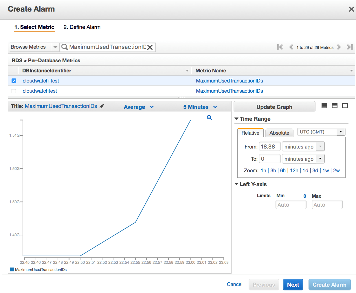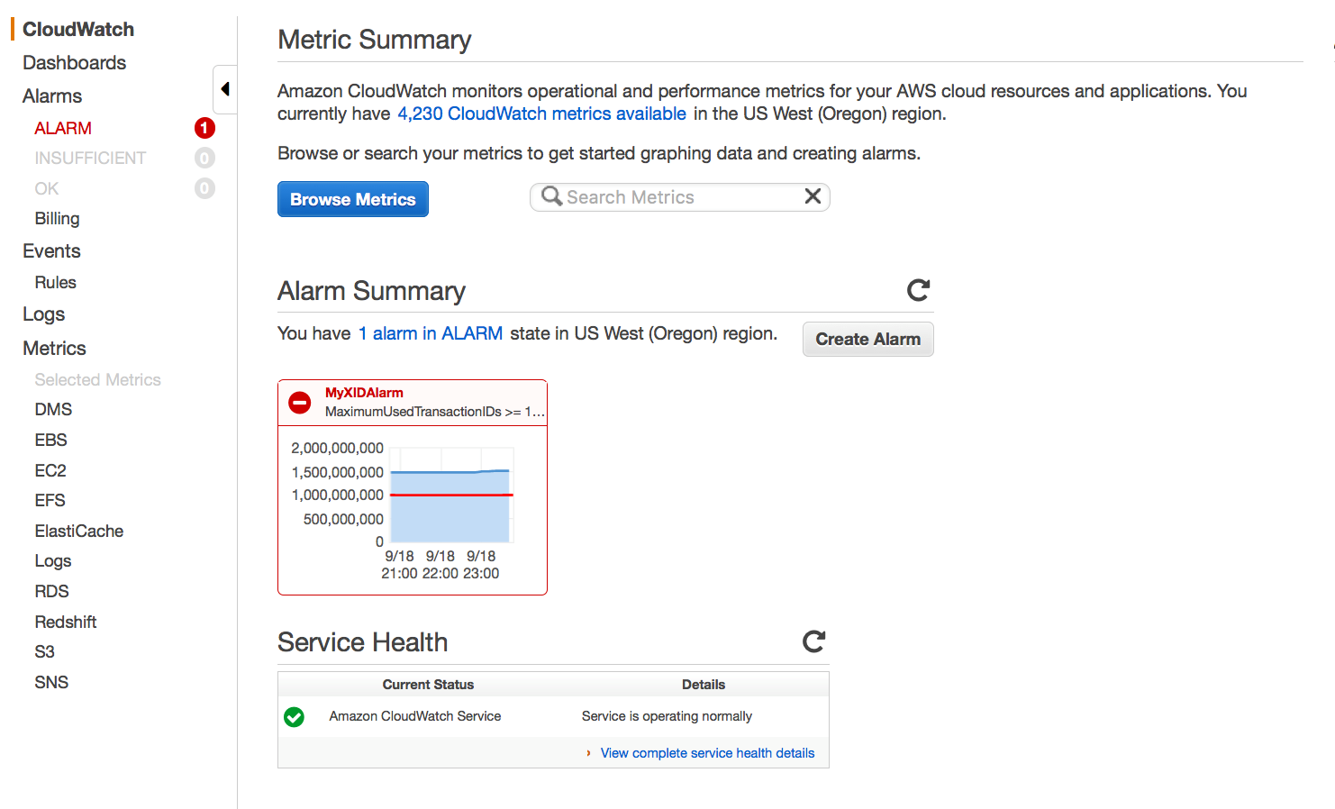 트랜잭션 아이디가 오래된 값을 유지하게 되는 경우, Amazon CloudWatch 지표인 MaximumUsedTransactionIDs를 사용하여 경고를 받을 수 있다.