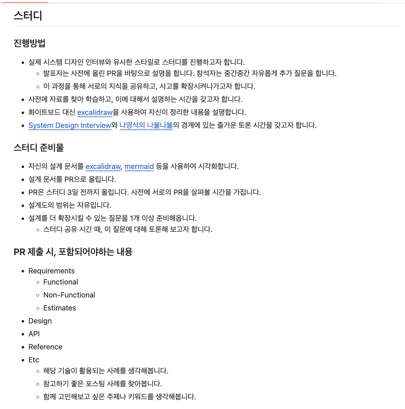 최근 커뮤니티를 통해 시스템 설계 스터디를 진행했다.