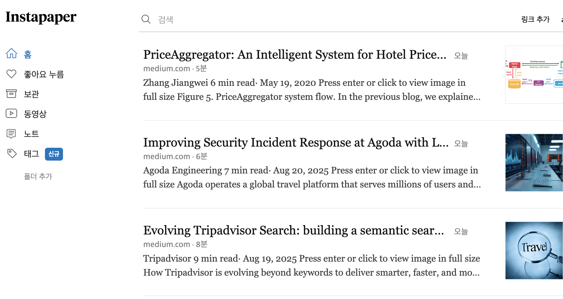 10년간 사용해온 스크랩 툴인 pocket이 서비스 종료를 하여, 대체제를 찾아봤다. instapaper이 가장 많이 언급되어 사용중인데, 괜찮은 것 같다.