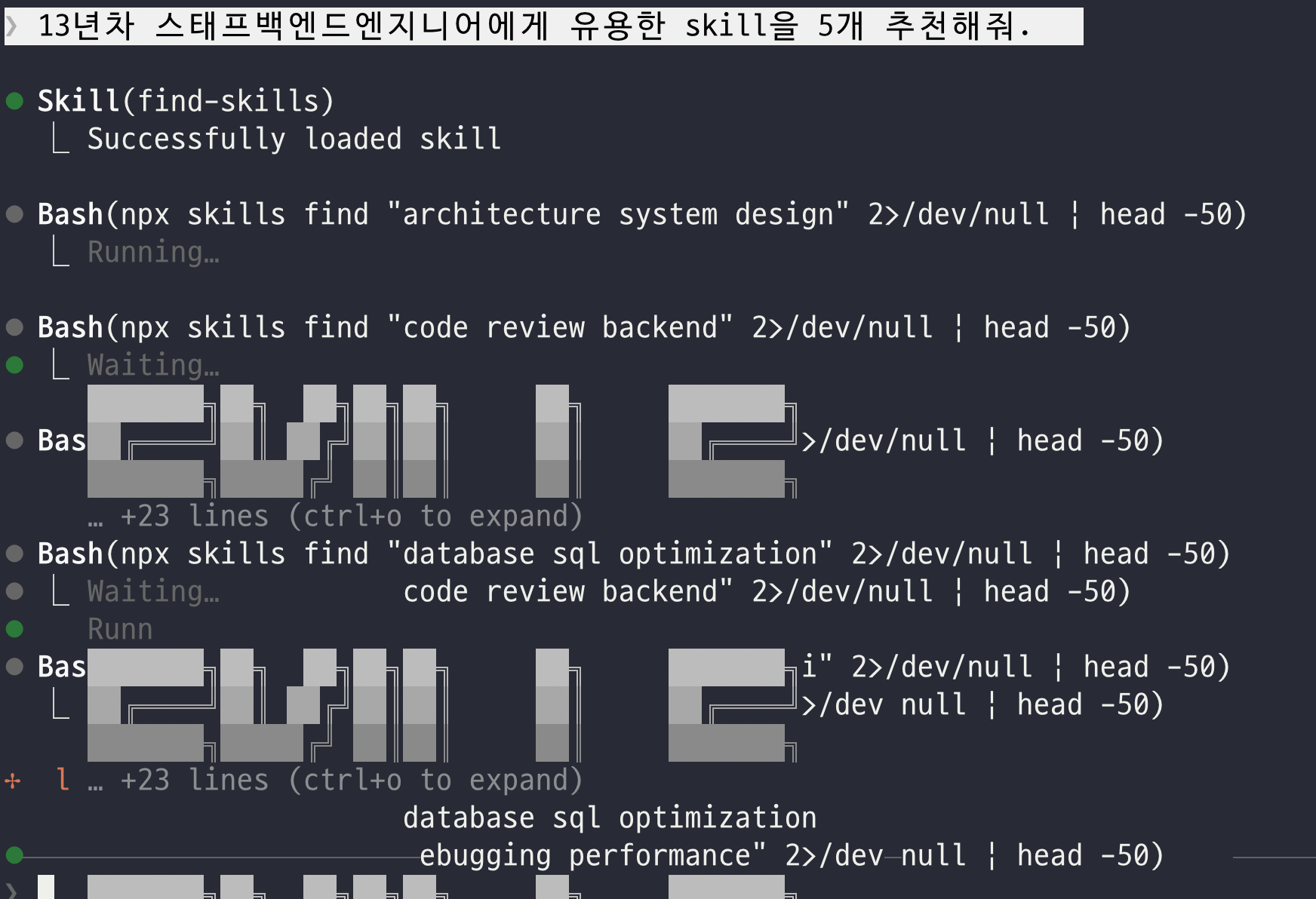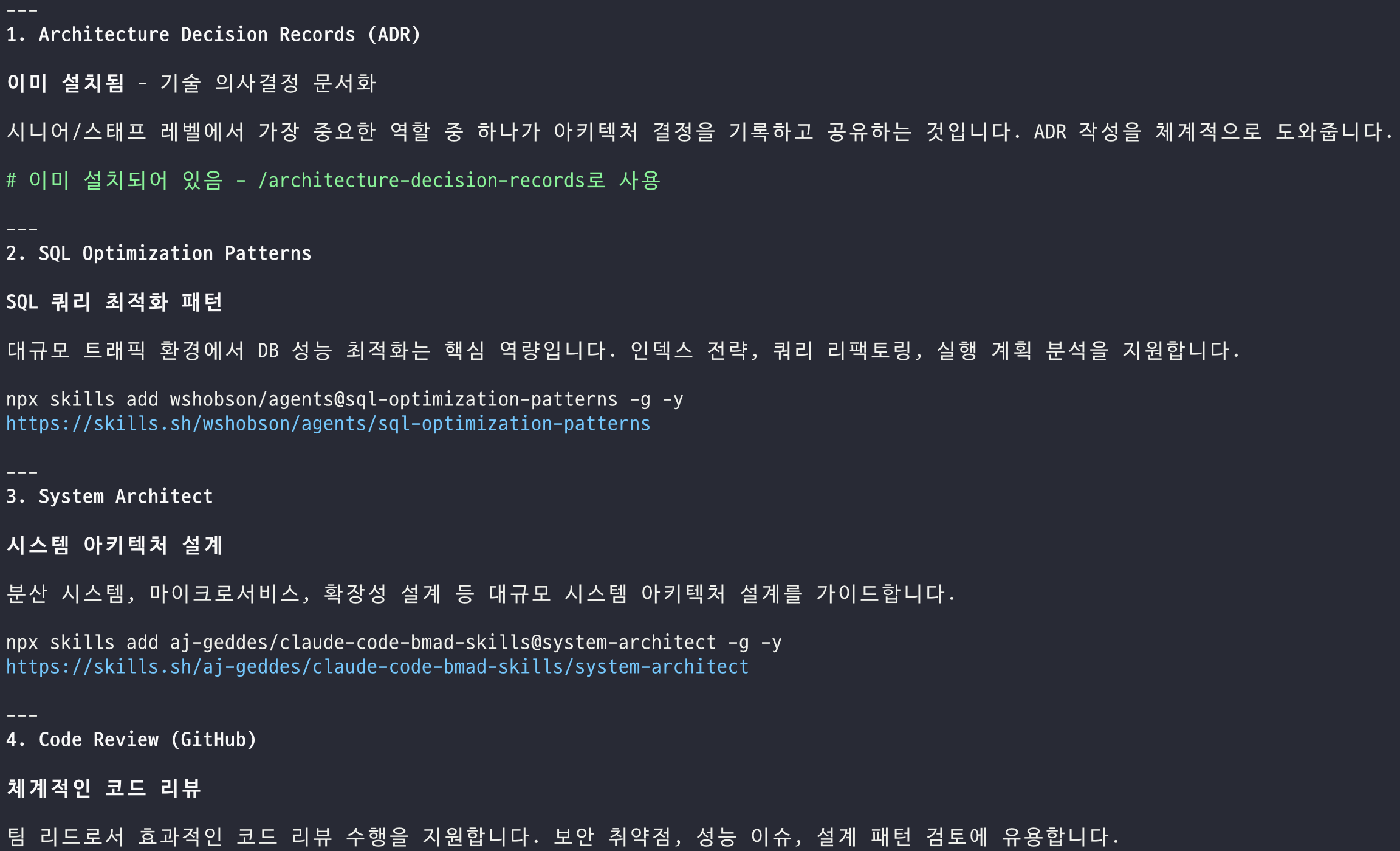 예시 프롬프트: "스태프엔지니어에게 유용한 skill을 5개 추천해줘"