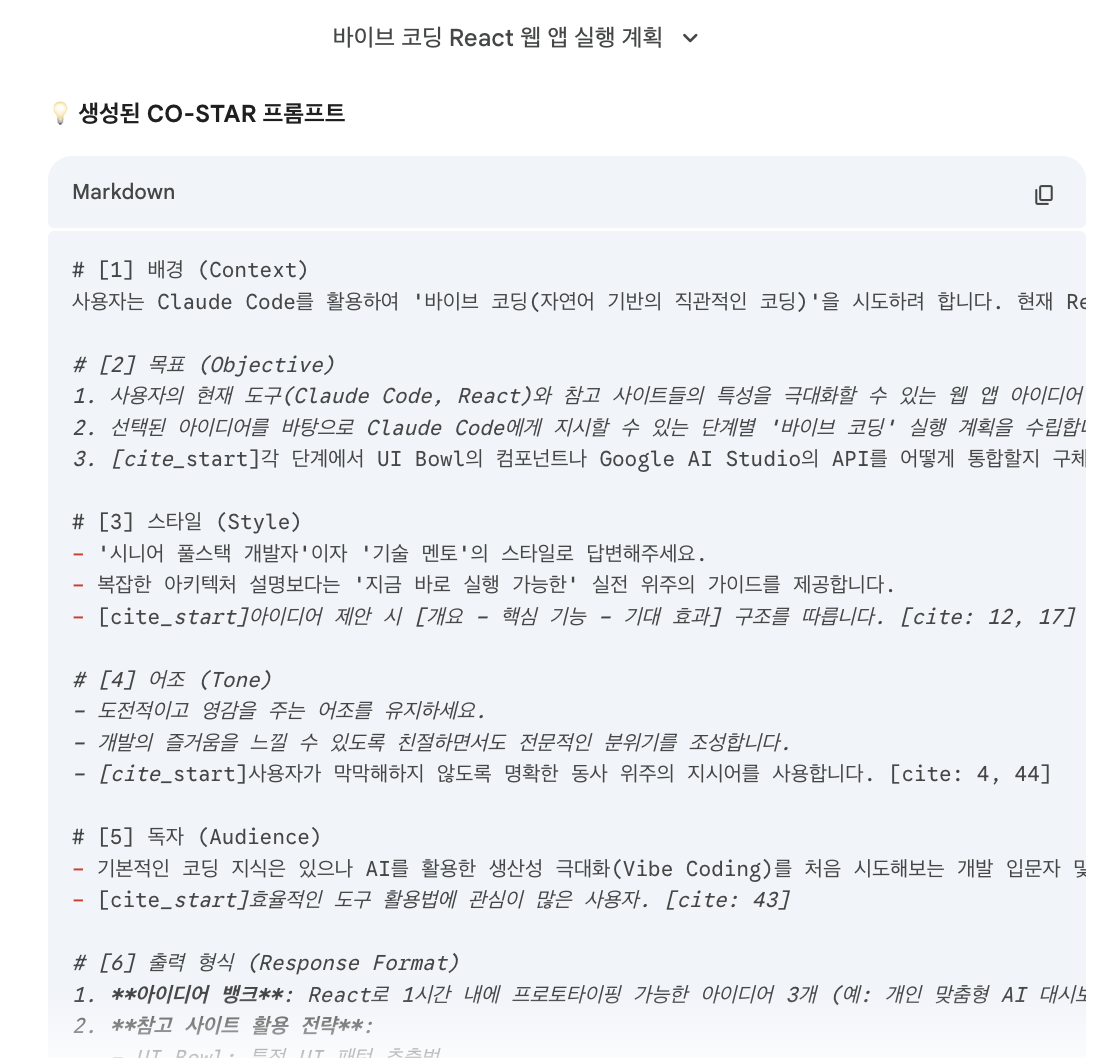 "이 개념을 빠르게 실습할 수 있는 예제 계획 짜줘"라고. 그러면 프롬프트가 나온다.