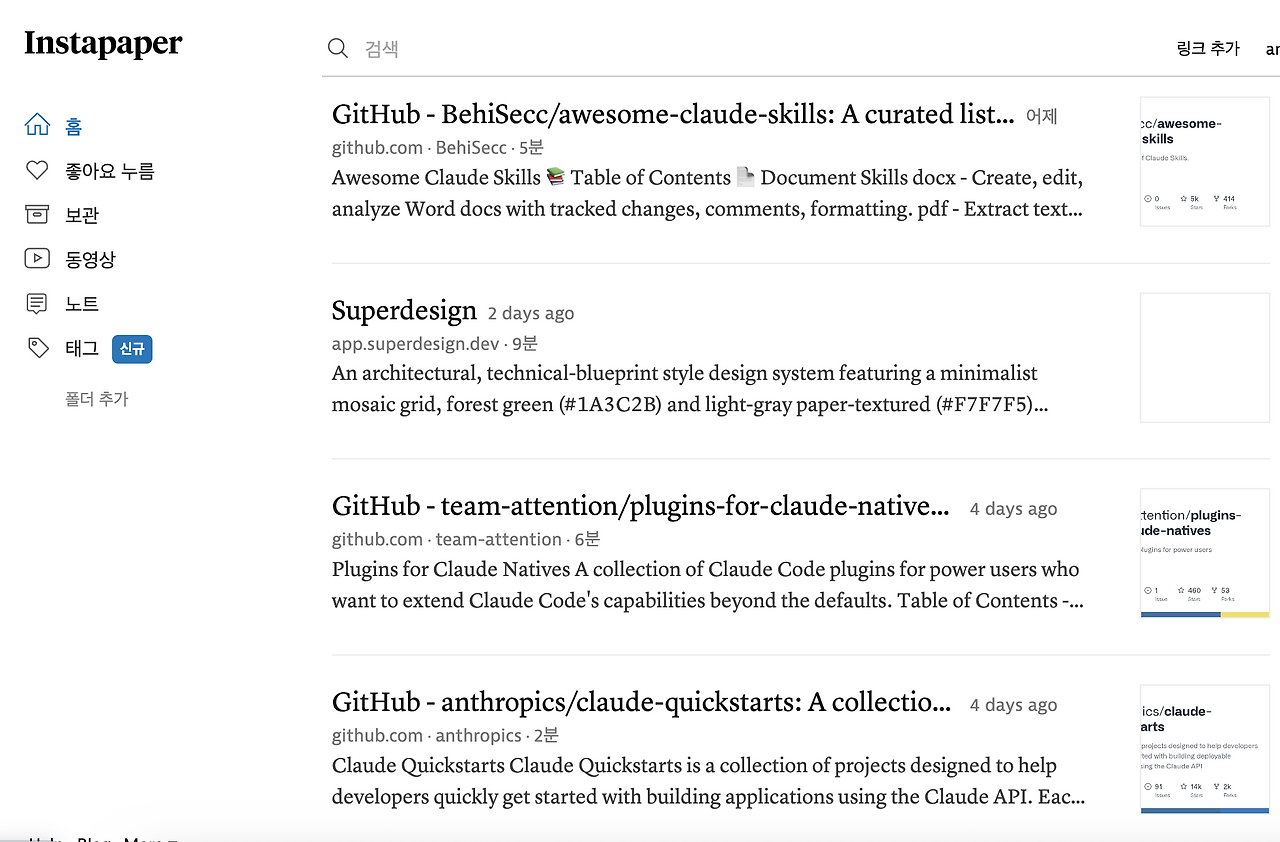 인터넷에서 AI 관련 아티클이나 자료를 발견하면 Instapaper에 북마크만 해둔다. 읽지도 않는다. 그냥 모아둔다. 출퇴근길에 패스트캠퍼스 AI 강의도 틈틈이 듣는다.