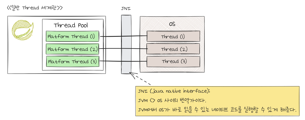 기존의 일반 Thread는 OS Thread를 그대로 매핑한 것이다. 이를 Platform Thread라고 한다.